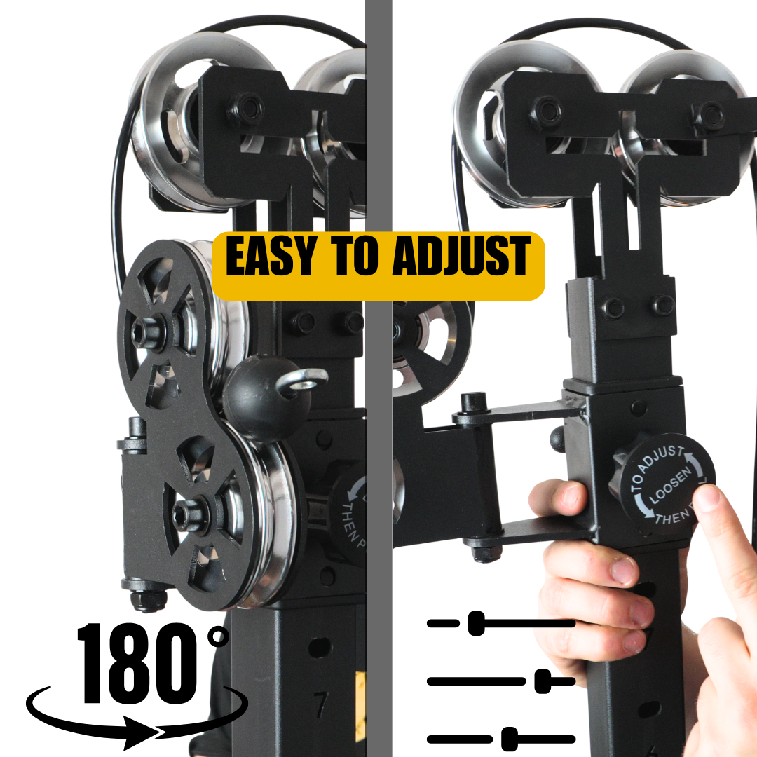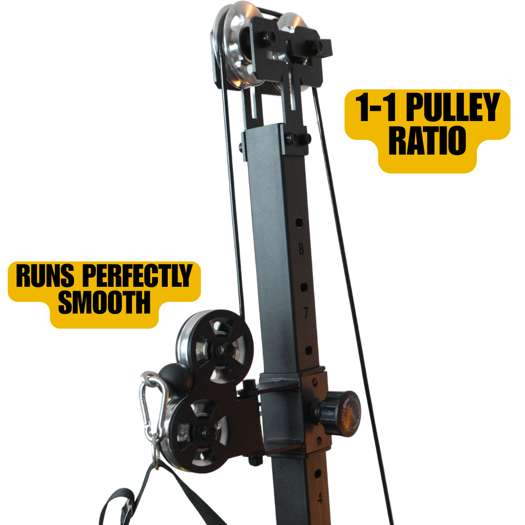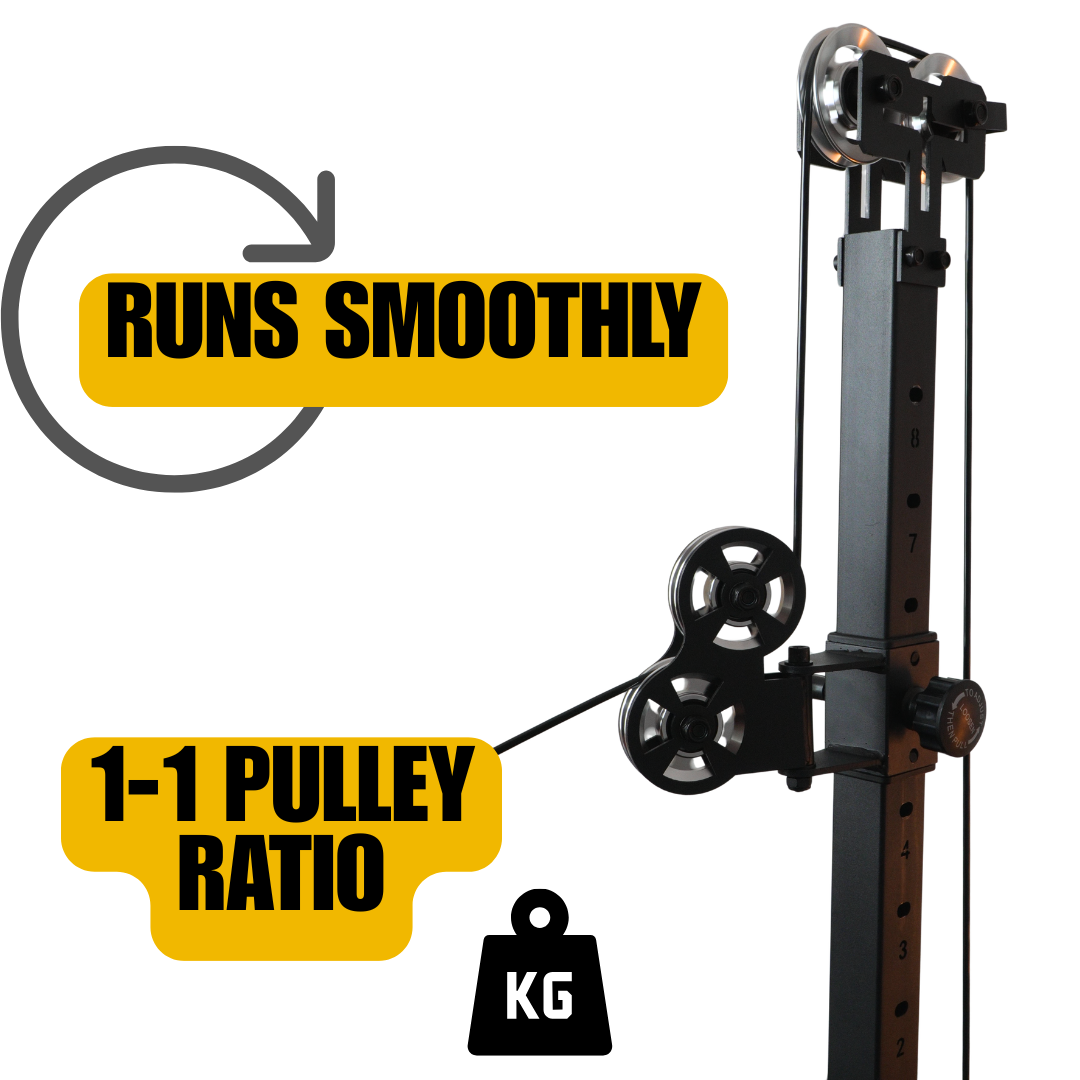 Mit seiner robusten Konstruktion hält der Kabelzug Belastungen von bis zu 100 kg stand, ideal für intensives und regelmäßiges Training. Die Höhenverstellbarkeit ermöglicht eine flexible Anpassung an verschiedene Übungen und Armpositionen, um deine Technik optimal zu verbessern. Der Clou: Der Kabelzug ist um 180 Grad drehbar, wodurch Übungen von beiden Seiten des Tisches möglich sind und somit eine vielseitige Trainingsroutine unterstützt wird.